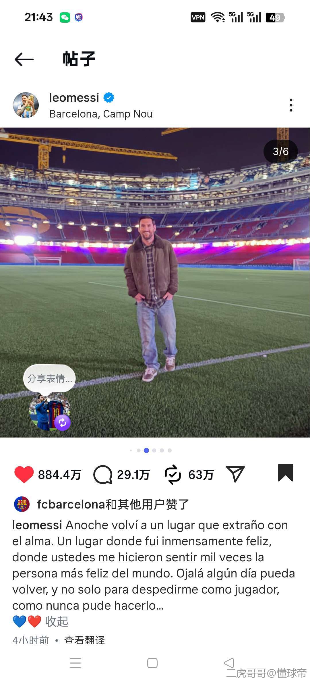 11-10 22:49发布仅4个小时后,梅西造访诺坎普社媒动态点赞已突破1000万