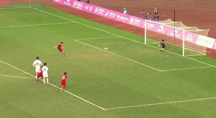 在更早结束的广东vs上海的比赛中,两队互有攻守,但都迟迟未能破门。下半场临近补时阶段,上海U20送点,效力于重庆铜梁龙的广东队球员张志雄主罚命中。