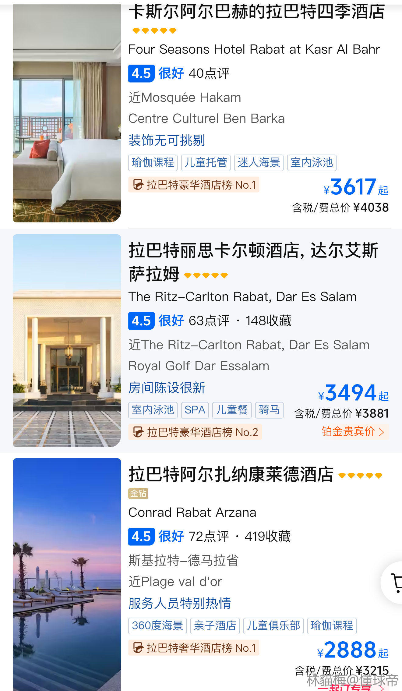 拉巴特也不是没有好酒店啊…康莱德丽思卡尔顿四季都有,纯粹是不愿意花钱