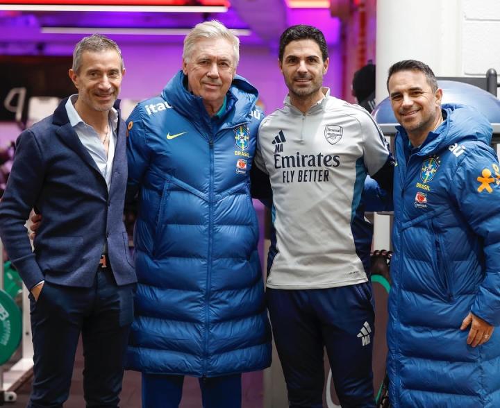 扫描下载懂球帝首页>动态> 巴西队在阿森纳基地训练,安切洛蒂与阿尔特塔会面并合影