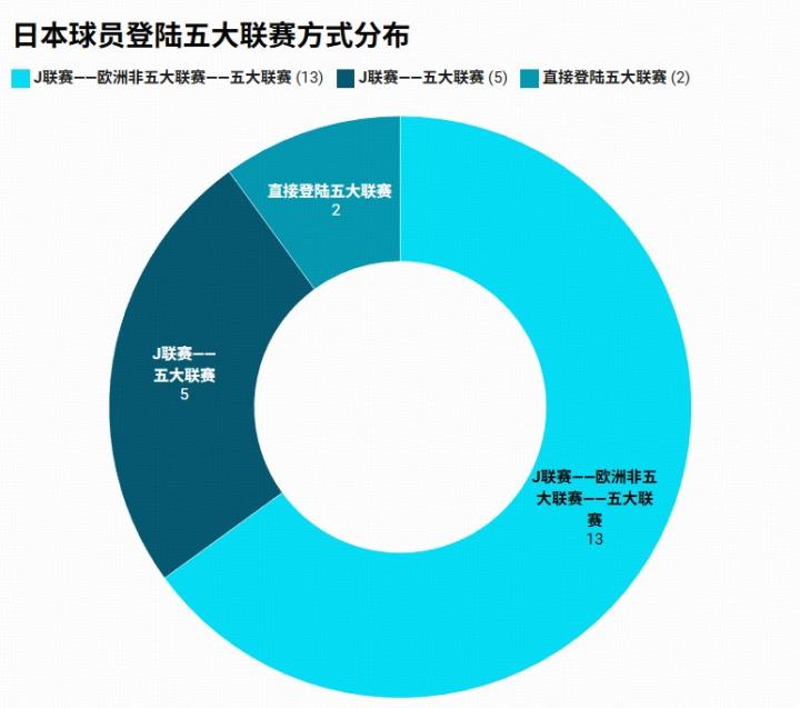 这 20 名五大联赛日本球员,其留洋经历可归纳为三类:J 联赛→非五大联赛→五大联赛、J 联赛→五大联赛、直接登陆五大联赛。其中绝大多数球员选择了第一条路径,既然我们以结果为导向,那我们便可以下一个结论:在登陆五大联赛前,“二流联赛”的历练对大多数球员来说是有必要的。