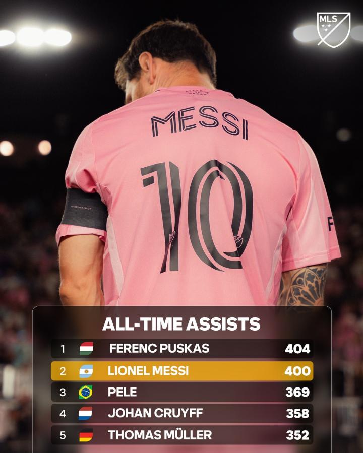 扫描下载懂球帝首页>动态> 美职联官方列足坛历史助攻榜:梅西距历史第一只差4次