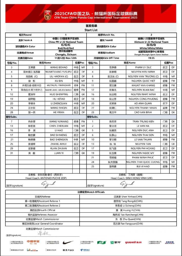 扫描下载懂球帝首页>动态> 中国U22vs越南U22:拜合拉木、徐彬先发,胡荷韬、贺一然出战