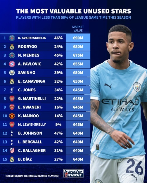 扫描下载懂球帝首页>动态> 德转列本赛季联赛参赛比例不足50%身价前15:KK、罗德里戈前2