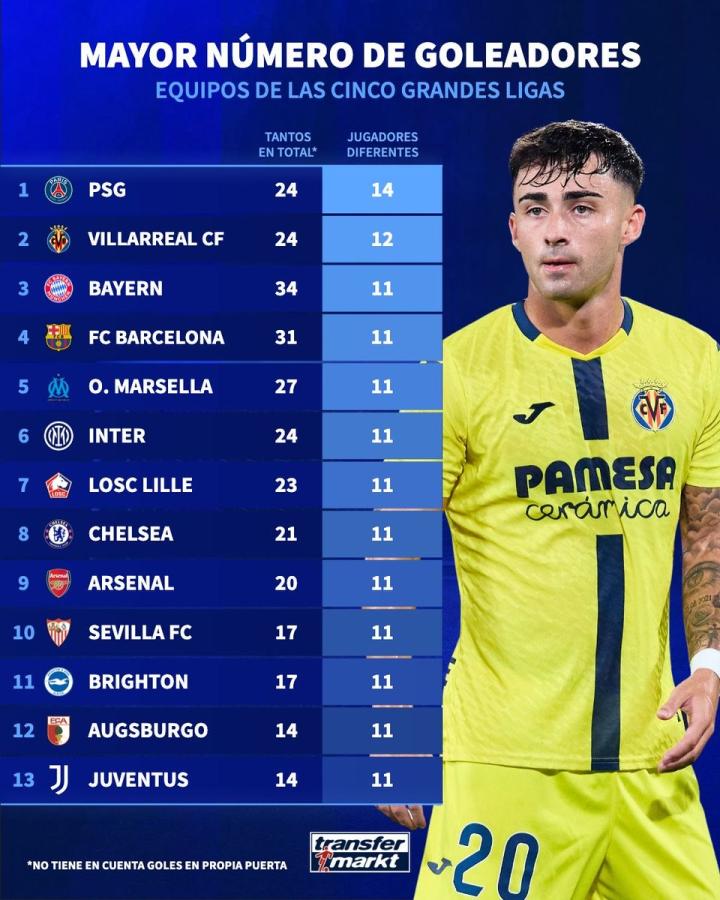 扫描下载懂球帝首页>动态> 德转列本赛季五大联赛进球人数最多球队:巴黎14人进24球第1