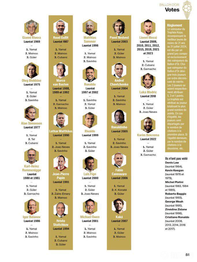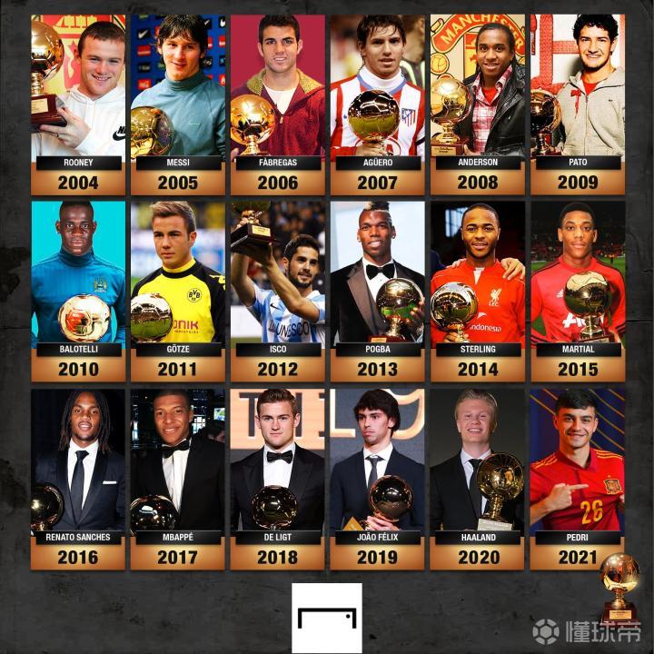 (图)欧洲金童奖获奖情况