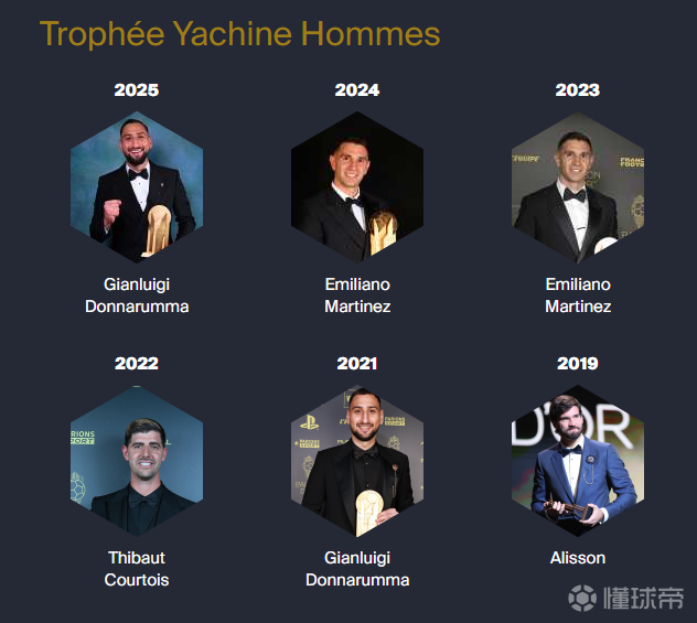 雅辛奖从2019年起开始颁发,用于表彰每年度(赛季)表现最优秀的足球守门员。