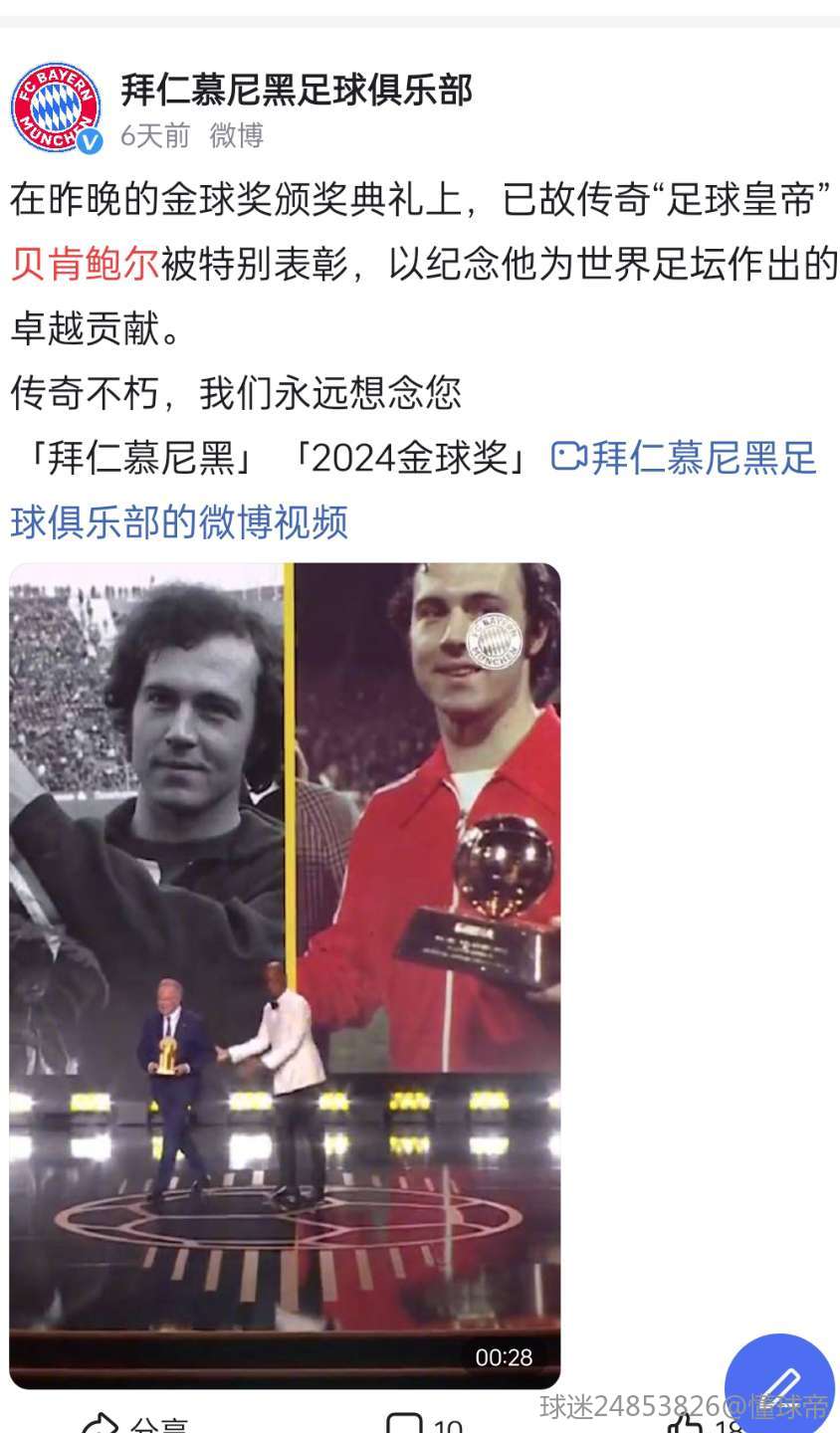 2024年金球奖官方都破例颁发给贝肯鲍尔历史最佳足球人大奖特别表彰,而且是金球奖组委会全票通过!这是世界足坛历史唯一就是贝利和马拉多纳都没有的地位待遇。