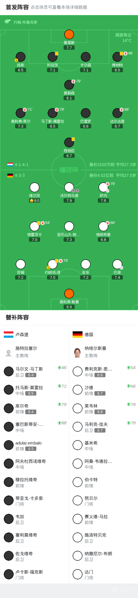 扫描下载懂球帝首页>动态> 德国2-0客胜卢森堡,沃尔特马德梅开二度,萨内送助攻