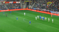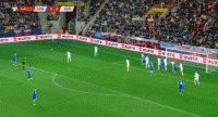 第45分钟,任意球开到禁区,什克里尼亚尔凌空抽射,皮球稍稍高出横梁