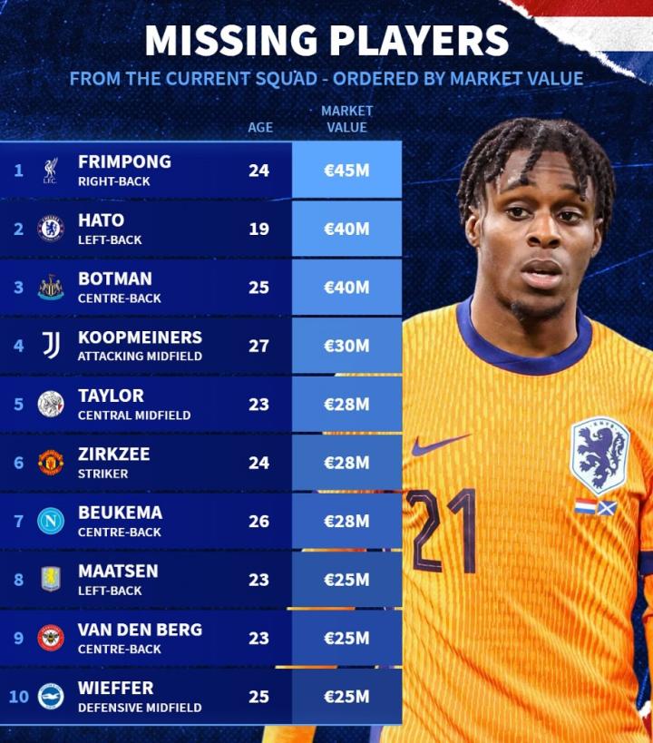 扫描下载懂球帝首页>动态> 此次未入选荷兰队身价前10:弗林蓬领衔,哈托、齐尔克泽上榜