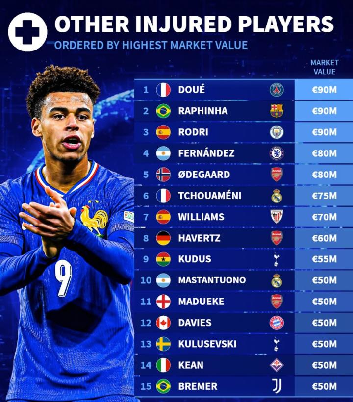 扫描下载懂球帝首页>动态> 因伤缺席本月国际比赛日最贵11人阵容:亚马尔、登贝莱领衔