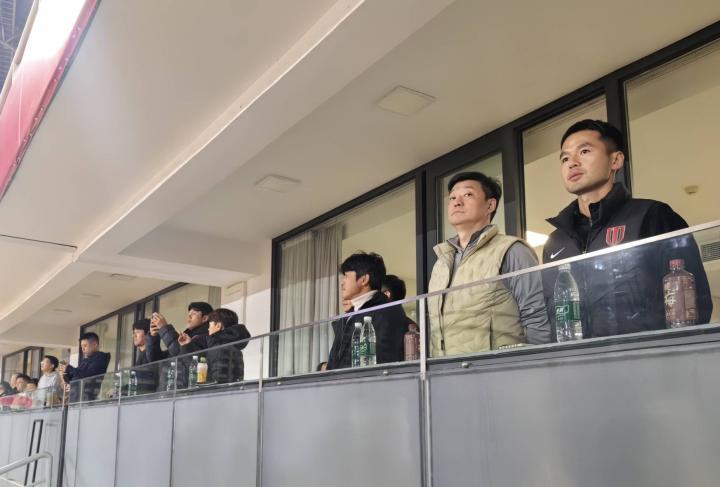 扫描下载懂球帝首页>动态> 成都蓉城教练组现场观战中韩战,徐正源、金亨镒在场