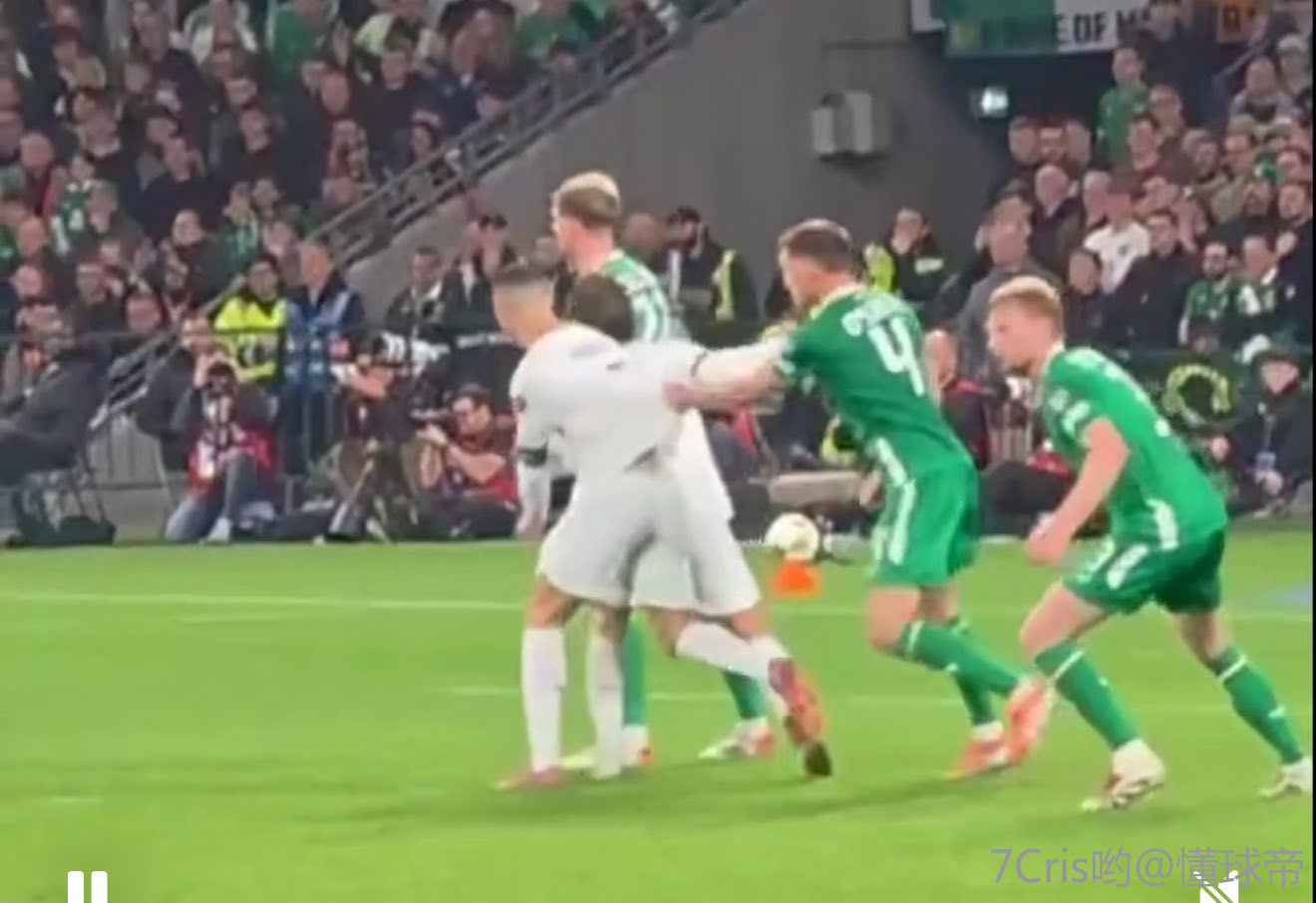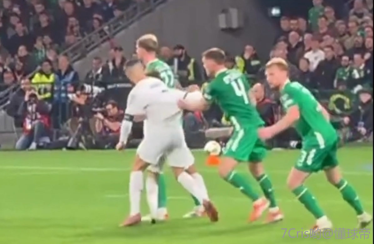 C罗都被扯的失去重心了,小菲都因C罗失重差点被干起飞了,“撕衣后”达拉奥谢