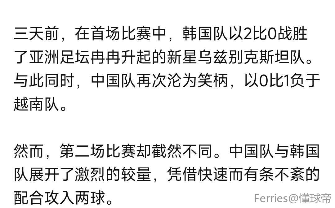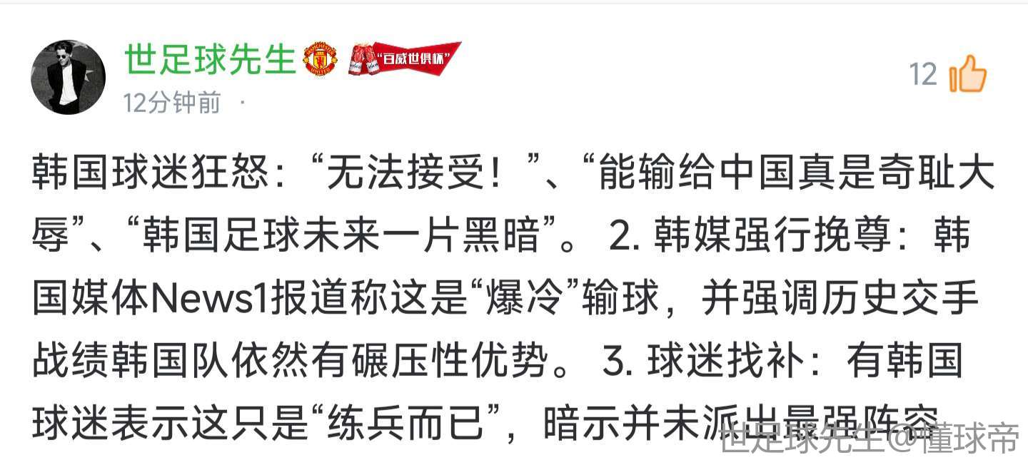 说实话目前还是挺羡慕韩国媒体的,我也想说出输给韩国是一种耻辱,而不是习惯