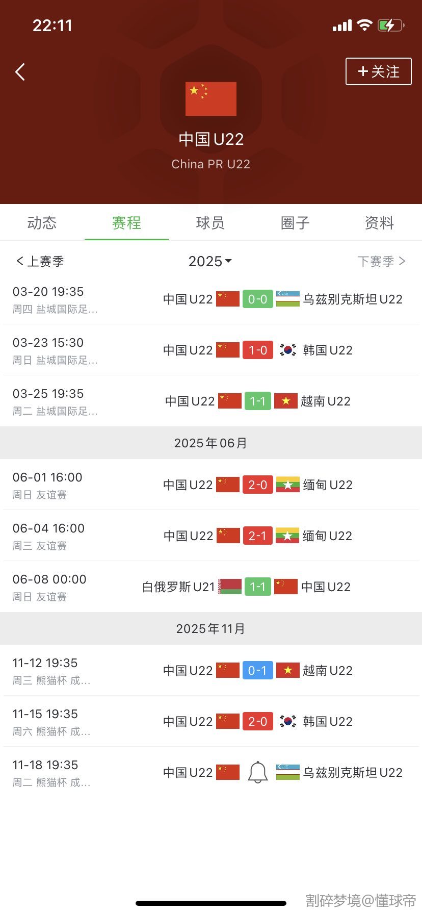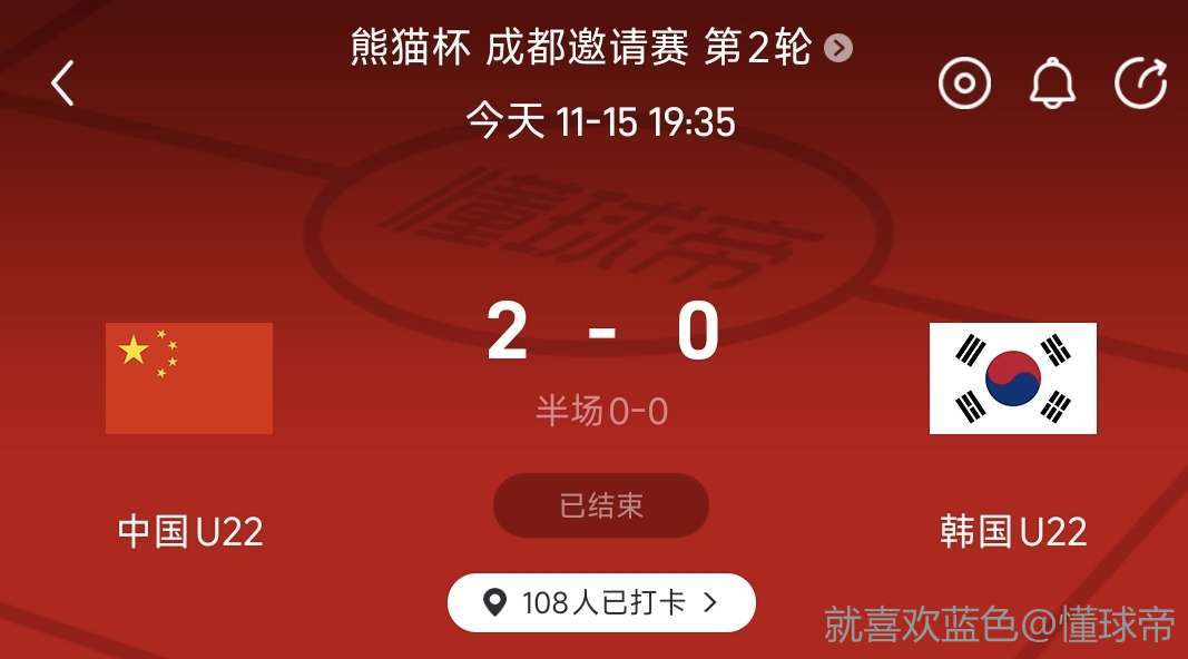 11-15 21:482-0胜韩国,熊猫杯实时积分榜中国U22登顶!