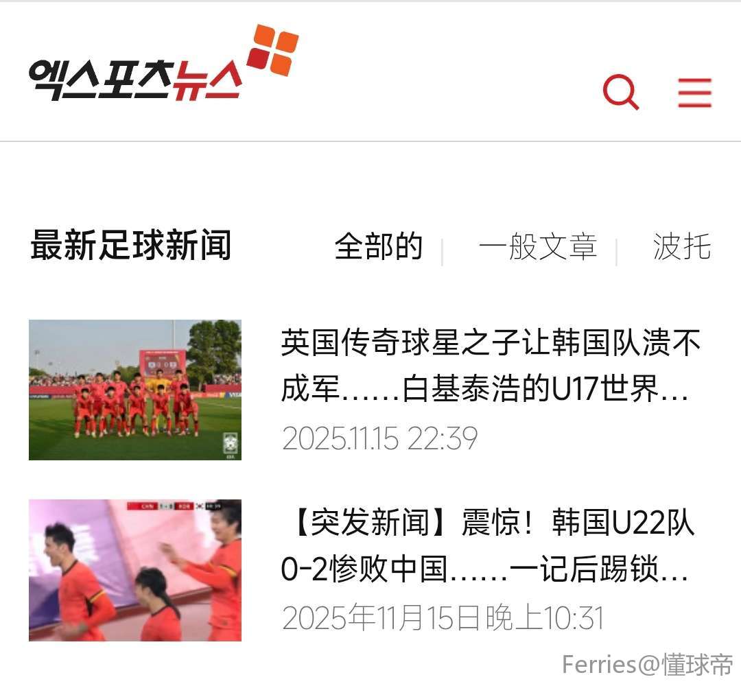 扫描下载懂球帝首页>动态> 韩媒:输给中国U22是前所未有的耻辱,这是一场令人震惊的比赛