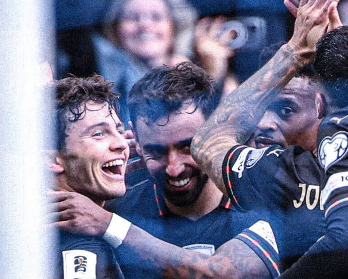 扫描下载懂球帝首页>动态> B费和内维斯各进三球,葡萄牙队史第3次单场比赛有两人戴帽