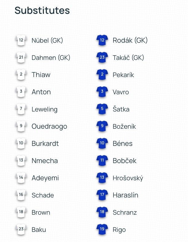 替补:12-努贝尔、21-达门、2-马利克-佳夫、3-安东、7-莱韦林、9-韦德拉奥果、10-伯卡特、13-恩梅加、14-阿德耶米、16-沙德、18-布朗、23-巴库