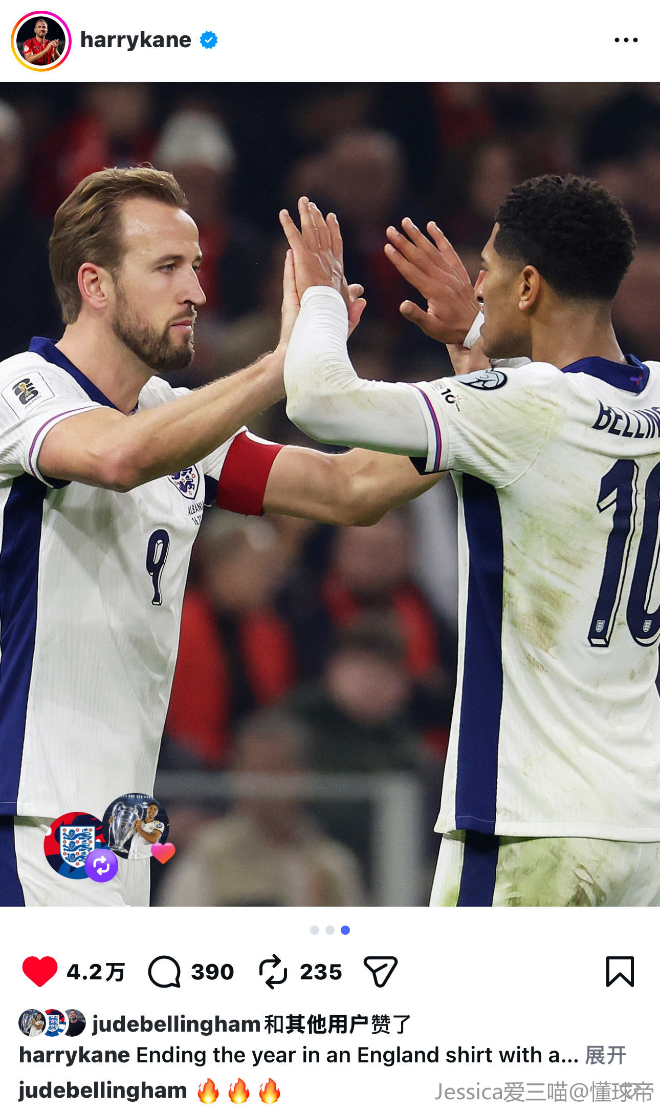 这媒体好爱挑事啊,贝林这不在庆祝凯恩的进球吗?