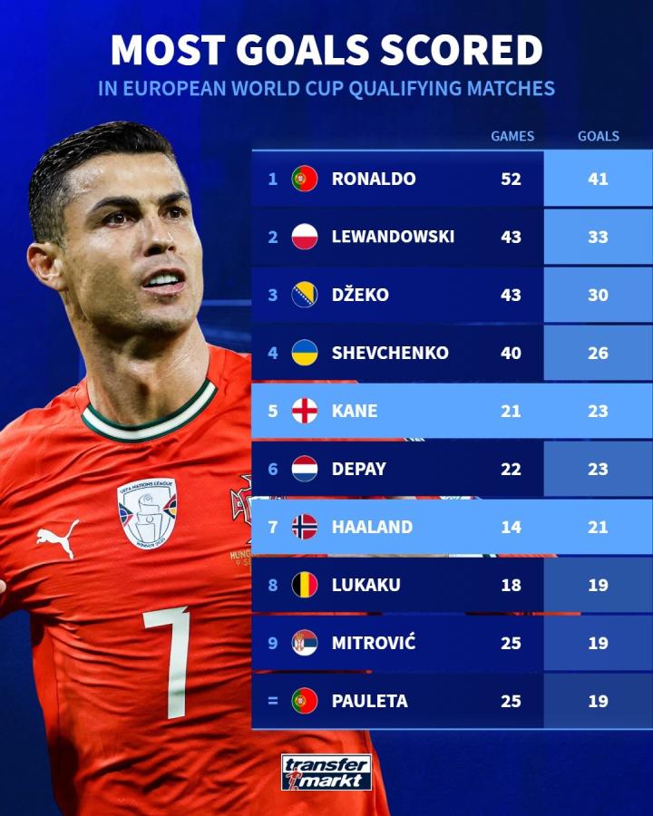 C罗就定在41球了,不会再有他的世界杯预选赛了