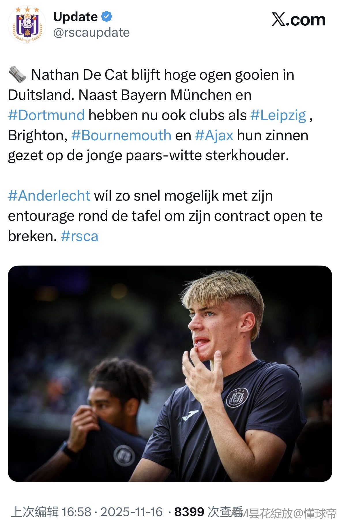 扫描下载懂球帝首页>动态> 德天空:德甲三强争夺17岁中场德卡特,安德莱赫特要价2500万