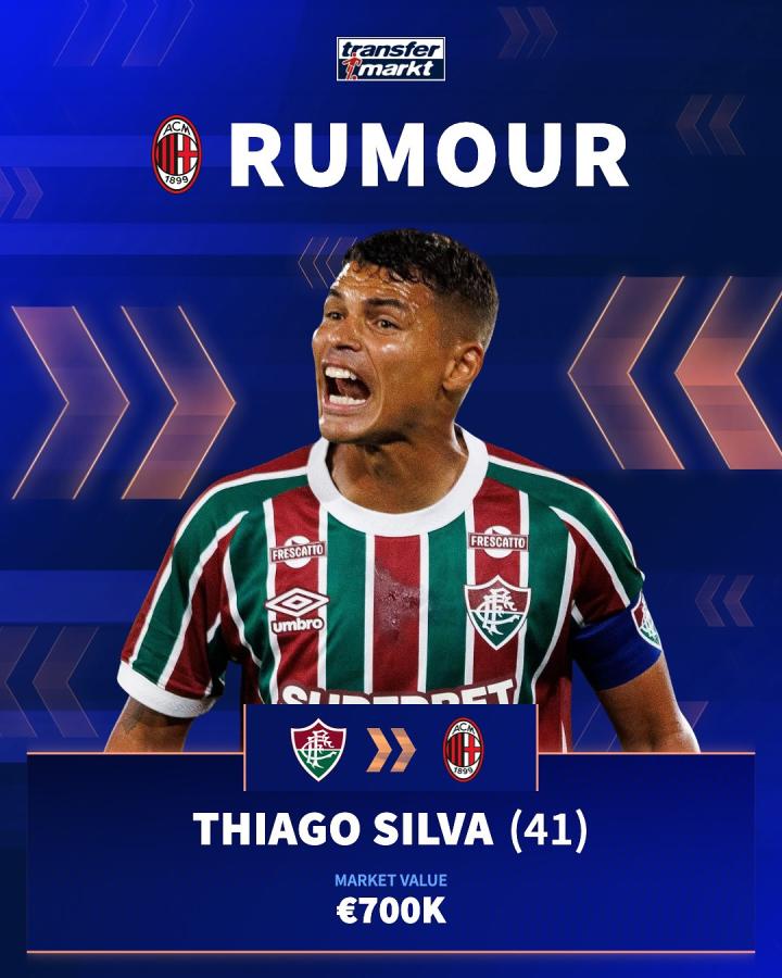 共和报:米兰正考虑冬窗签回41岁的蒂亚戈-席尔瓦
