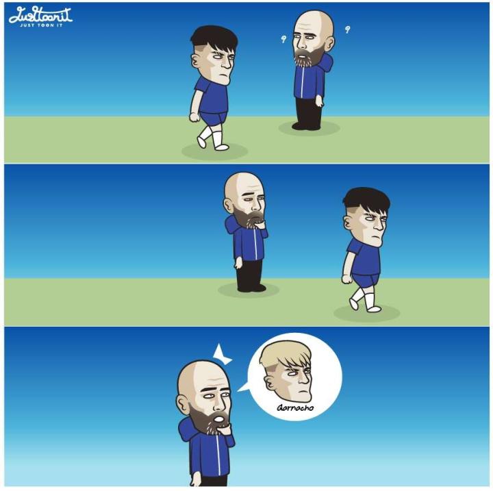 加纳乔 黑头发 Garnacho, black hair 😆 Cartoon by Kaew Justtoonit, Artist from Thailand.