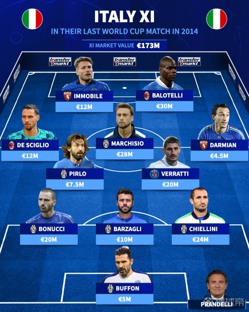 扫描下载懂球帝首页>动态> 意大利上一场参加世界杯的首发11人:6人已退役,2人无球队