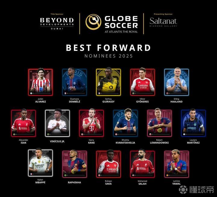 环球足球奖2025年度最佳球员候选:姆巴佩在列,巴黎8人入选