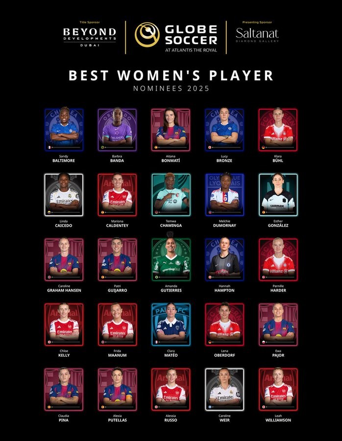 环球足球奖2025年最佳女足球员候选名单