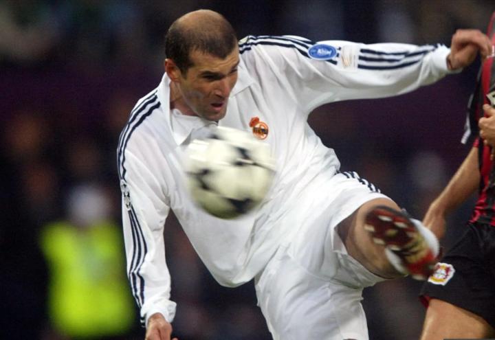 2002年欧冠决赛,齐达内代表皇家马德里对阵勒沃库森时打入惊艳凌空抽射。