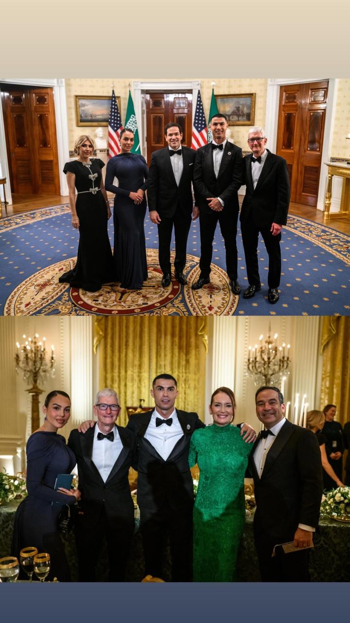 扫描下载懂球帝首页>动态> 乔治娜分享晚宴照片:C罗与苹果公司CEO库克合影