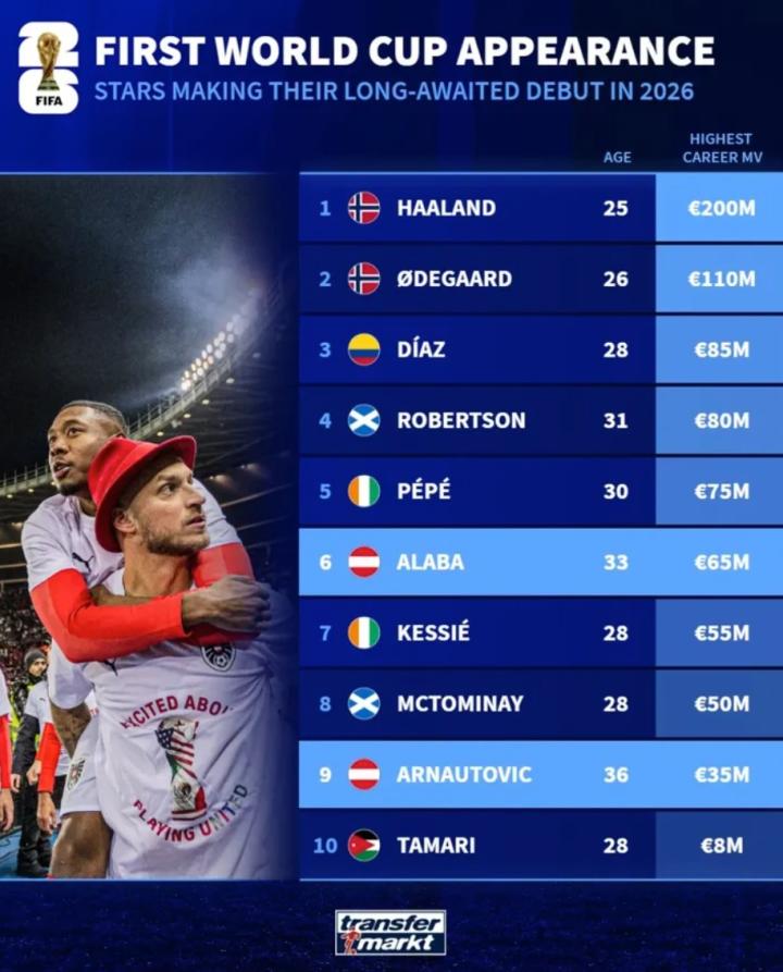 扫描下载懂球帝首页>动态> 德转列将首次参加世界杯历史身价TOP10:哈兰德、厄德高前2