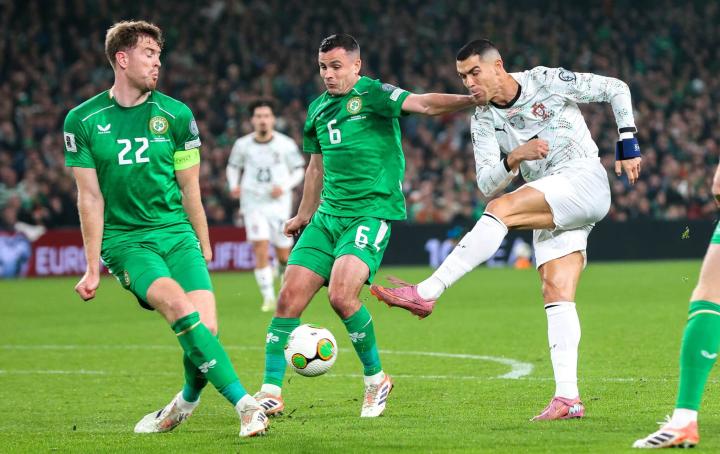 C罗是沙特阿拉伯拳击和格斗赛事的座上宾,但这类动作不该出现在足球场上——在都柏林,他用一个颇具UFC姿态的肘击动作击倒了达拉-奥谢,被红牌驱逐。后果可能相当严重,一旦被认定为暴力行为,葡萄牙巨星将因停赛错过明年世界杯的前两场小组赛。