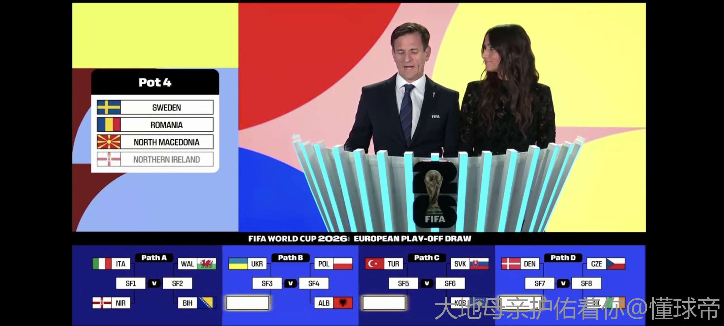 上次意大利附加赛的好签叫北马其顿,那么这次