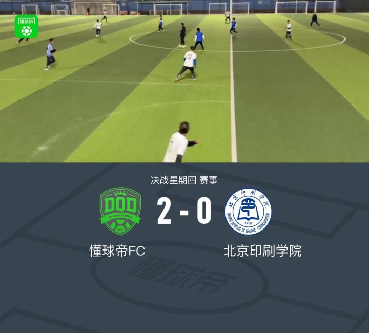 大家晚上好,又是一个元气满满的周四,我懂本场比赛的对手是北京印刷学院。本场比赛前我懂实习生芃澈回归懂球帝FC担任门将,对阵他的大学北京印刷学院。双方经过较量,最终懂球帝2-0战胜北京印刷学院。
