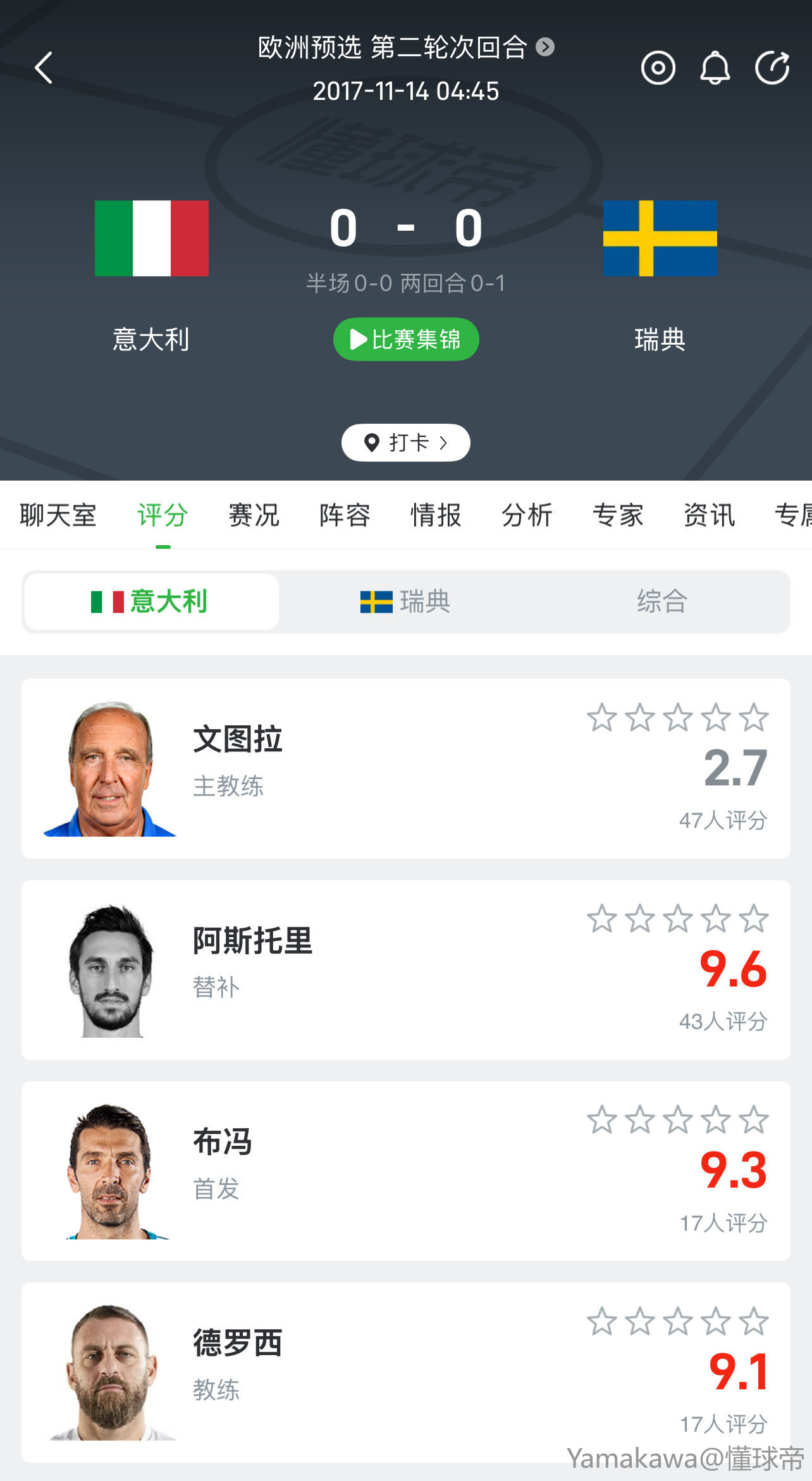当年17年世预赛对瑞典,意大利最后一次角球进攻,看见你也上去去争的时候,心里真是一阵心酸。唉,六届世界杯的参赛记录近在咫尺、却又遥不可及……………………