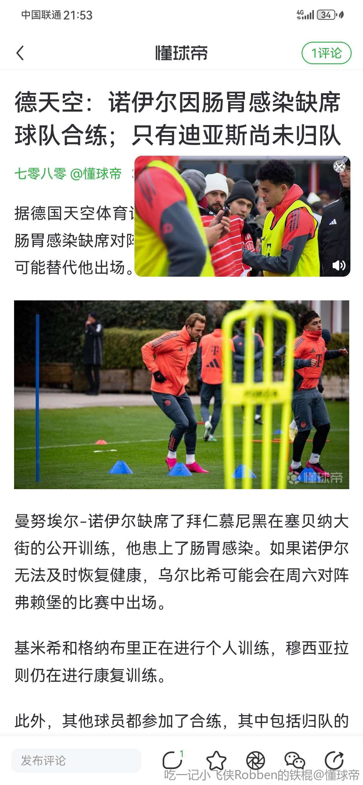 扫描下载懂球帝首页>动态> 德天空:诺伊尔因肠胃感染缺席合练,乌尔比希可能替代他出场