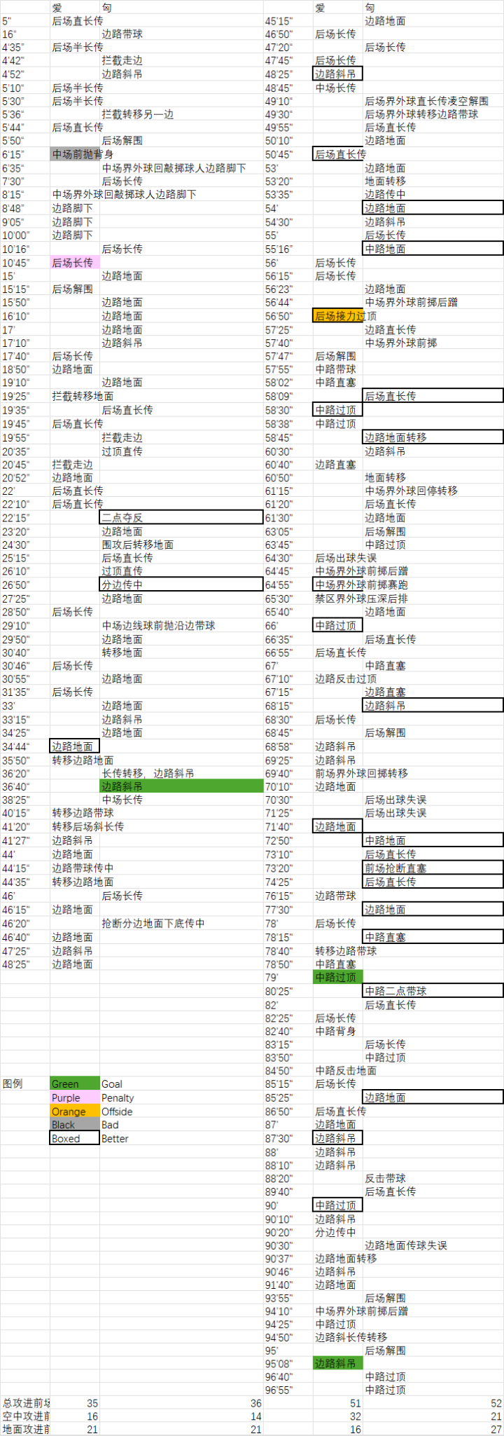 放一张我回看整场比赛做的笔记,双方每次各是怎样攻击对手的?