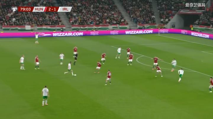 虽然从制造比较好的进攻机会来看,爱尔兰并不吃亏。但这个阶段匈牙利又领先着一球半,进攻投入无需太大,所以不压人数不冒险,自然机会也不容易出太多。而且这样相持,有点像给爱尔兰倒计时——时间差不多了哦!匈牙利并不急迫要再进球,只要把表走完就赢了。即便这样,下半场匈牙利创造出的好机会,还是不亚于爱尔兰,甚至还有一点小优。