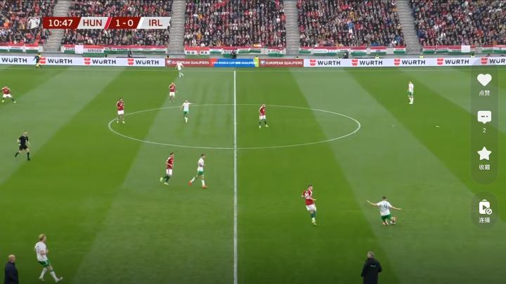 下半场爱尔兰大概看这样没戏,所以打出了老派英式的空中作业为主,但前半程还是被动多一些,尤其前 20 分钟,匈牙利的攻势次数几乎要比爱尔兰翻倍多。