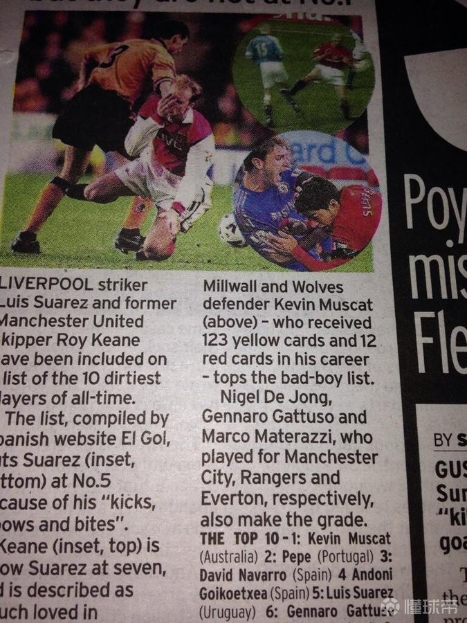 除此之外,因踩踏沃特福德球员韦伯险些被球队解雇、与谢菲联门将肯尼在球员通道大打出手被禁赛五场、开场9分钟肘击格林斯比球员博尔丁被罚下、在足总杯掐住利物浦球员巴罗什的脖子——“澳大利亚屠夫”从不放过任何与对手“亲密交流”的机会。