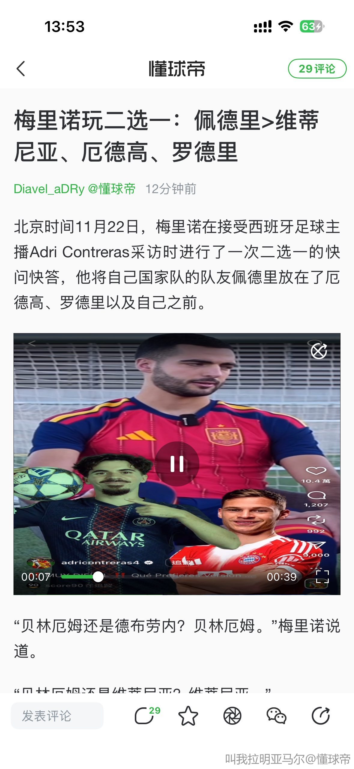 扫描下载懂球帝首页>动态> 梅里诺玩二选一:佩德里>维蒂尼亚、厄德高、罗德里