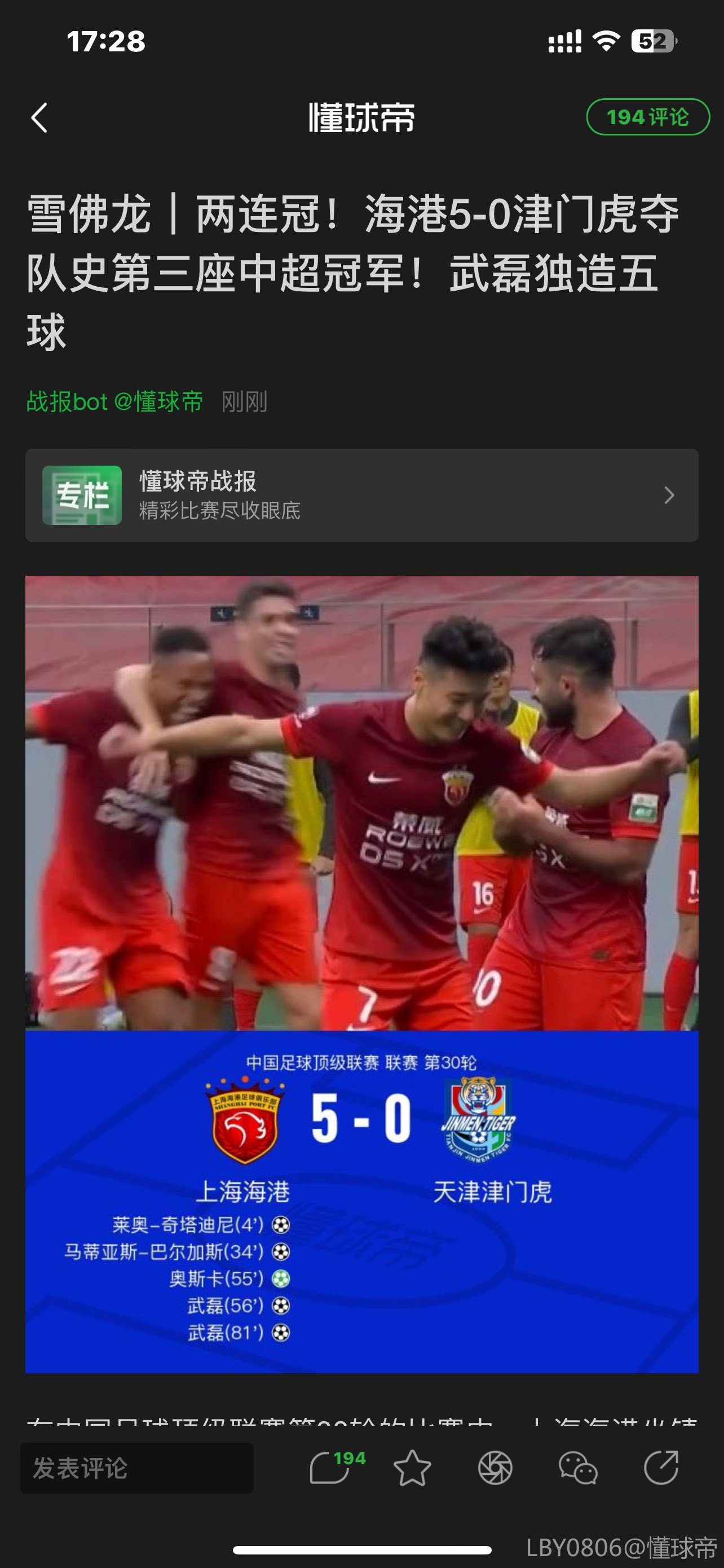 张琳芃创造历史,他第11次赢得中超冠军(恒大8冠/海港3冠),超越郑智独占历史第一。徐新7次赢得中超冠军(恒大3冠/山东1冠/海港3冠)独居历史第六位。颜骏凌、陈威、王燊超、魏震、李圣龙、吕文君、武磊完整见证了海港的四次中超冠军,成为了海港这个辉煌时代的缔造者!