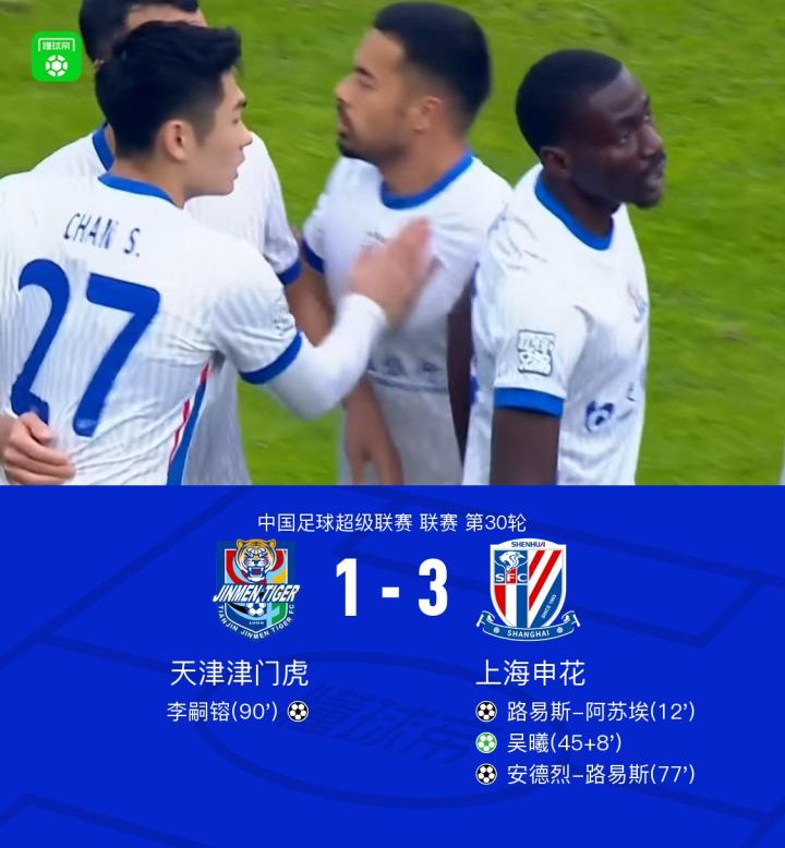 扫描下载懂球帝首页>动态> 申花3-1津门虎连续两年屈居亚军,李嗣镕首秀即破门,吴曦点射