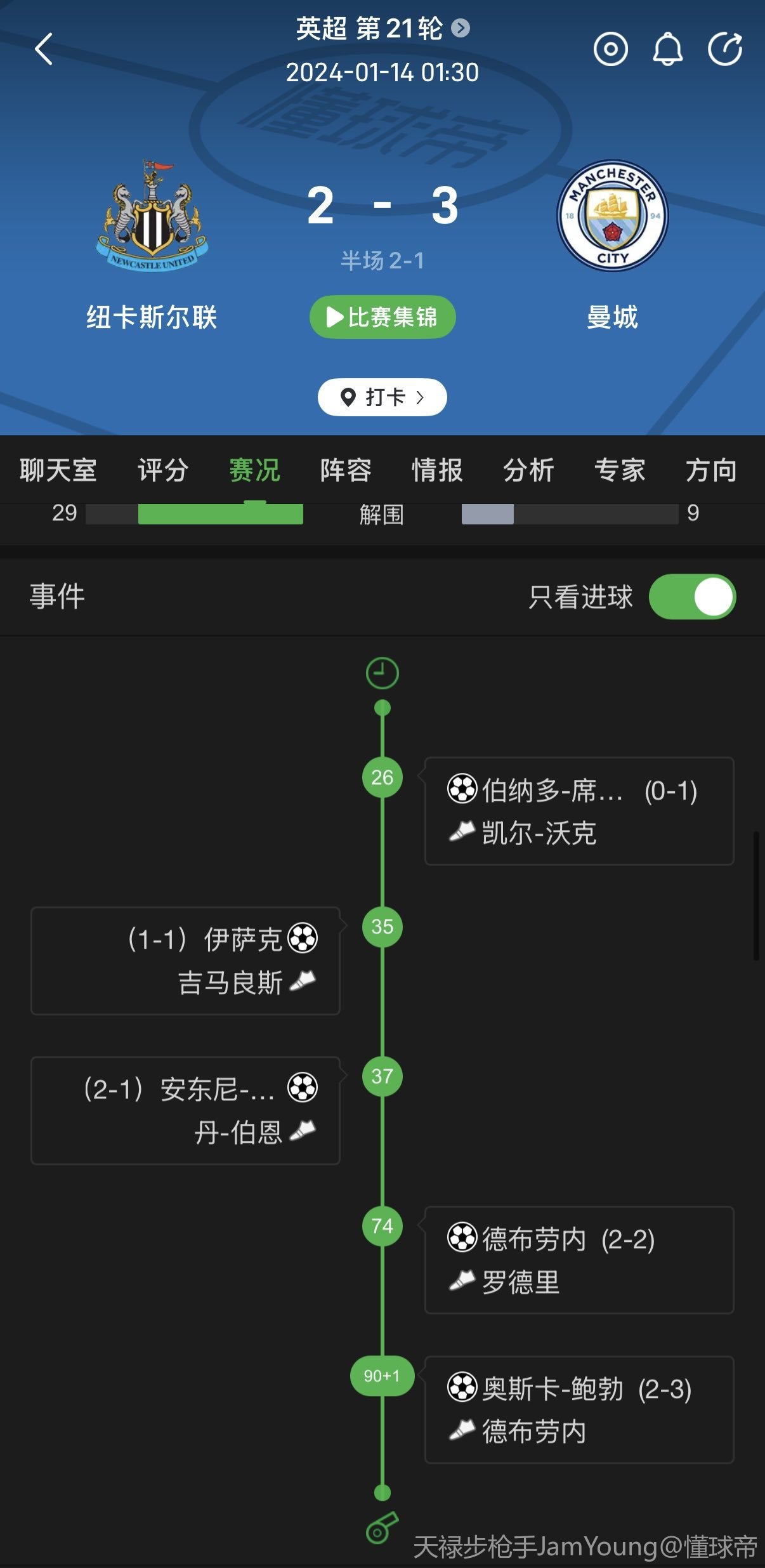 输了就输了,var也不讨论,我就想说这比赛踢了94分钟,纽卡居然才吃了第一张黄牌,我真是觉得很他妈牛逼