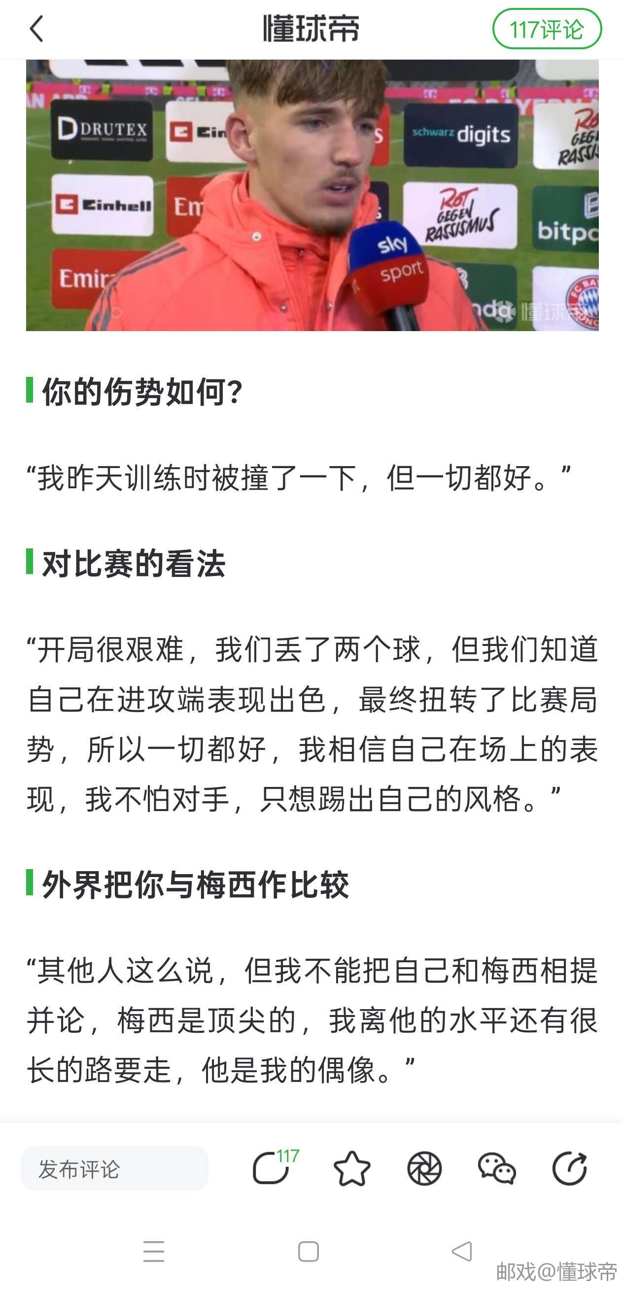 像极了刚上一线队的穆夏拉。。未来可期啊。。给机会就出彩!拜仁的42号果然不养闲人!