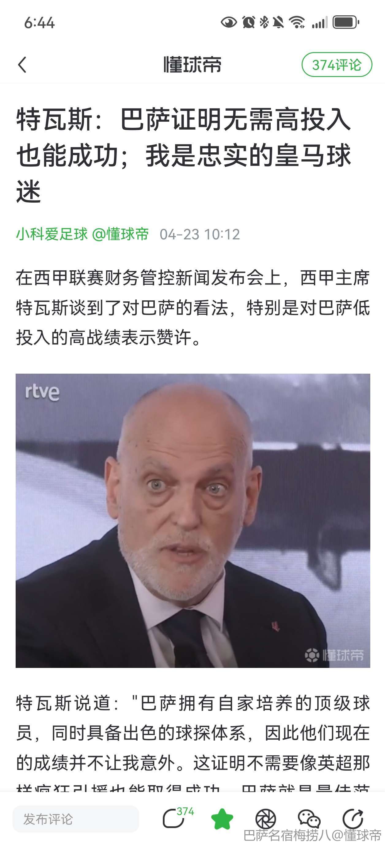 “特瓦斯作为联盟主席的薪酬是英超联盟主席的六倍,这是不正常的,” 他谈及特瓦斯的任职报酬时表示。“西甲联盟将预算用于媒体领域,这也不正常。有些媒体的成立目的就是为了损害皇马的利益,更令人担忧的是,这种行为是秘密进行的。联盟主席拒绝向我们提供相关信息,” 他遗憾地说道。“西甲联盟因传奇博物馆项目的失败而持续损失数百万欧元的俱乐部资金,而该项目不过是为其在媒体领域的投资寻找借口,这同样不正常,” 他补充道。