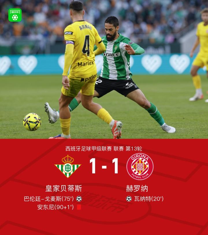 扫描下载懂球帝首页>动态> 贝蒂斯1-1赫罗纳,安东尼直红,伊斯科助攻巴伦廷-戈麦斯破门